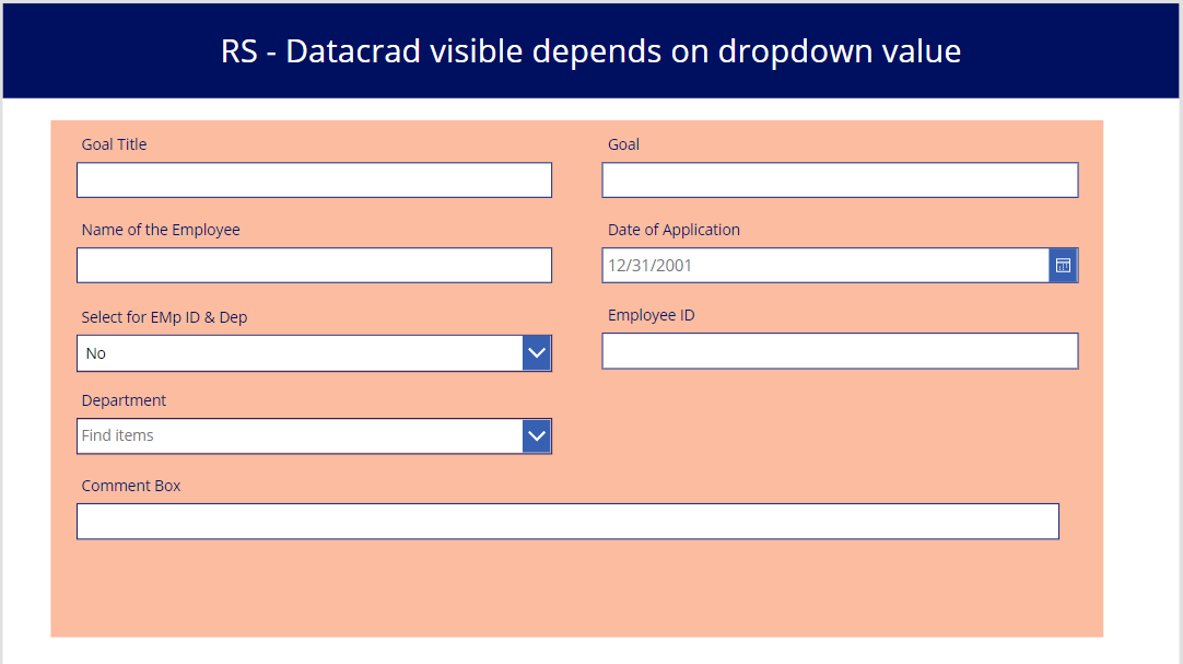 - Selecteddrpdown is the name of the field in the Datacard – ‘Select for EmpId & Dep’