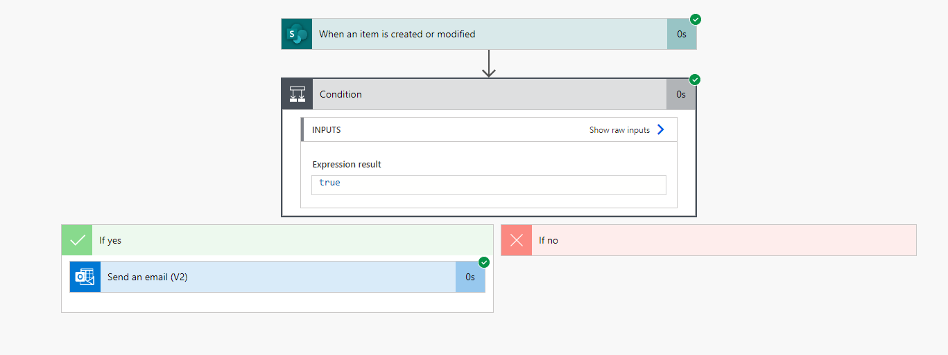 Now Save and Run the flow. Create a new item in the list, as the condition is true it returns true value and after flow running successfully then check the mail for expected output.